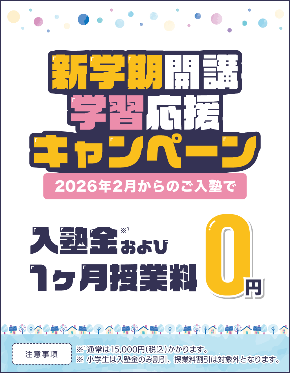 - 体験学習の初日には、授業開始の15分前程度に来塾していただき、簡単なカウンセリングを行います。